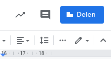 Google G Suite is volledig ontworpen om online samenwerken te faciliteren. Om in een document samen te werken kun je rechts bovenin op de knop ‘Delen’ klikken.