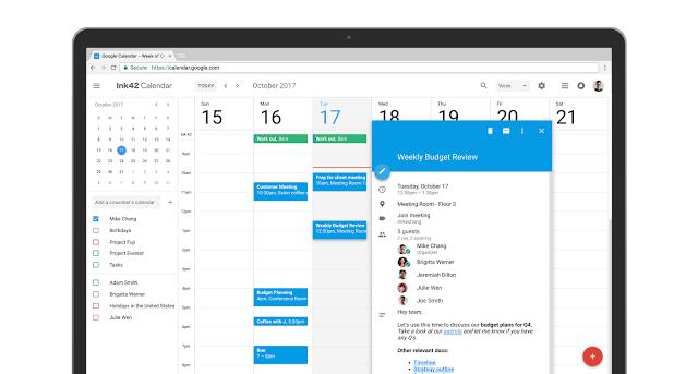 De mobiele app van Google Agenda bevat een hoop functies waar veel gebruikers erg blij mee zijn. Veel van deze functies zijn nu ook overgenomen naar de webversie. Zoals het moderne kleurenpalet, het design en een responsieve lay out die automatisch aan je beeldscherm aanpast, zodat je er fijn mee kunt werken zonder dat er delen buiten het scherm vallen. Voor Enterprise heeft Google wat extra functies toegevoegd zodat teams gemakkelijk afspraken kunnen voorbereiden en inplannen.