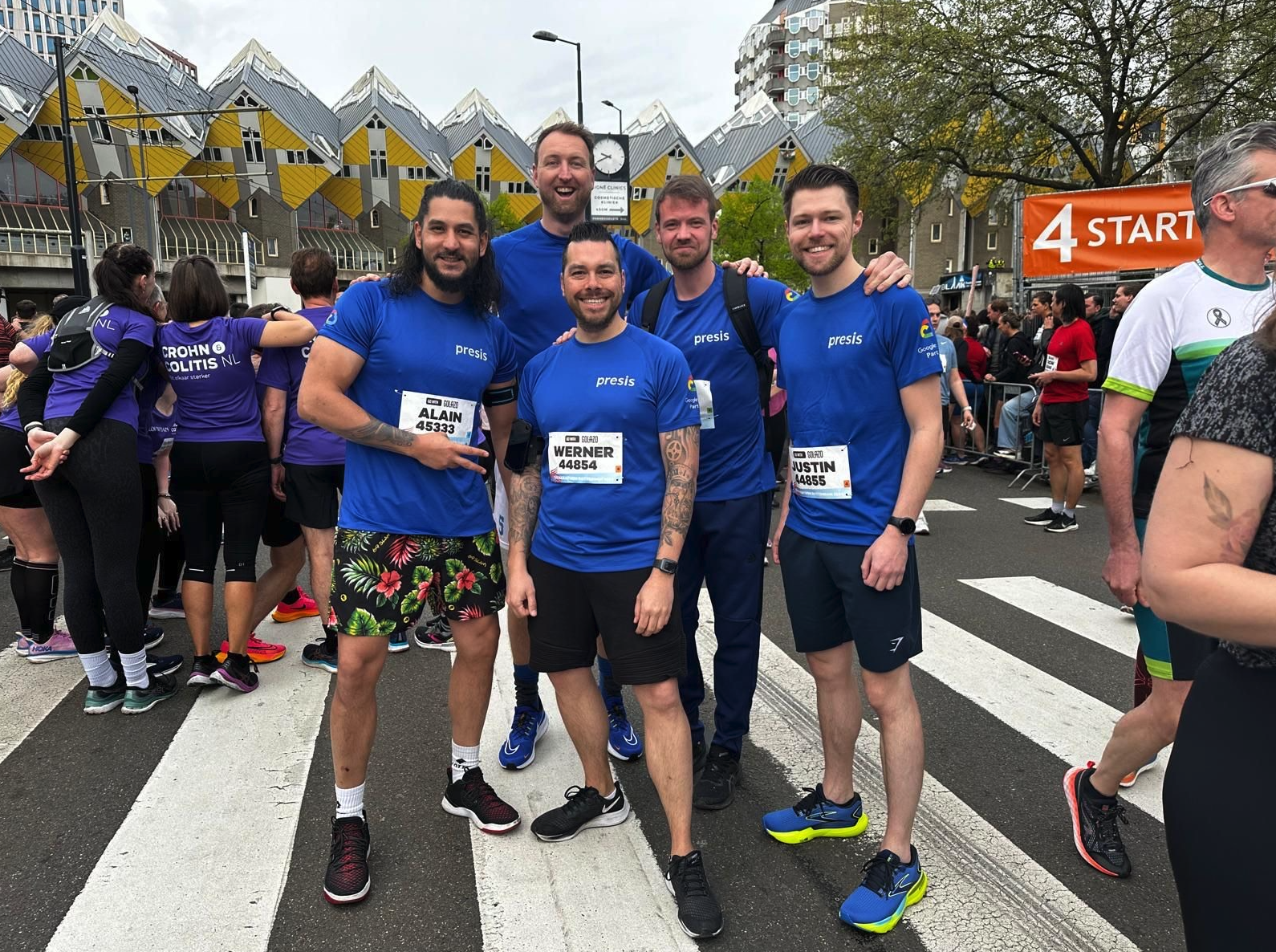 Op zondag 14 april 2024 waagden onze 5 dappere mannen van Presis zich aan de uitdaging om de Rotterdamse Marathon te lopen. Ondanks het weer hebben zij met z’n allen een geweldige prestatie geleverd door maar liefst 1/4e van de marathon uit te lopen!