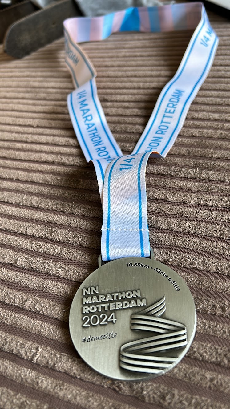 Na een prachtige route door de stad Rotterdam kwamen zij moe, maar voldaan over de finishlijn. De prestatie werd beloond met een welverdiende medaille en een gevoel van trots.