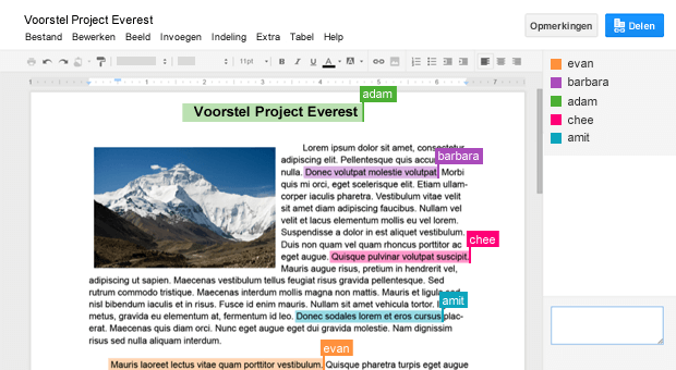 Je kunt met meerdere mensen aan hetzelfde document werken, met behoud van volledige versiecontrole. Zo kan een team supersnel een klantdocument opleveren, zonder dat de leden op elkaar hoeven te wachten, of versies heen en weer moeten mailen. Een video hierover kun je HIER vinden.