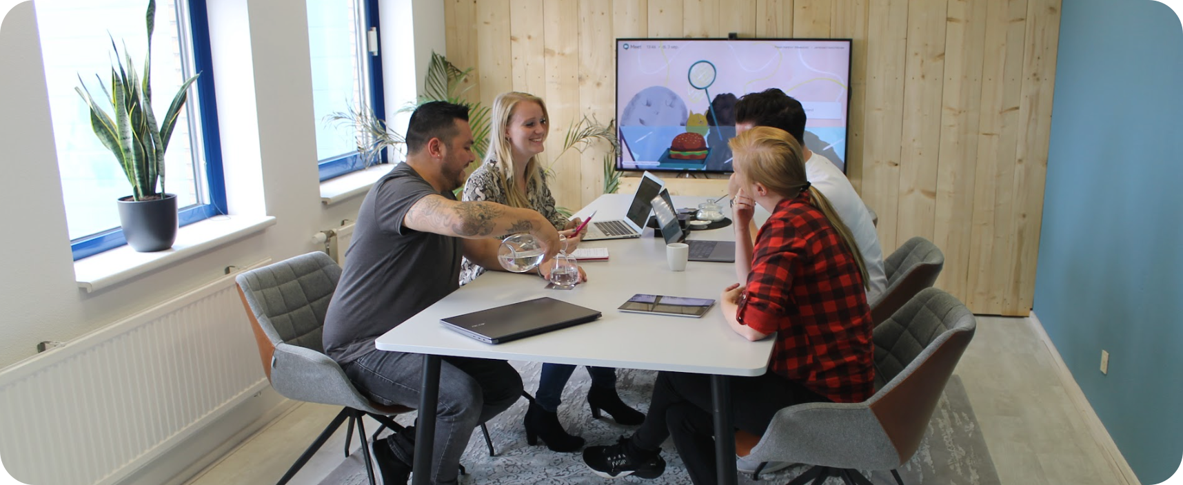 Het zien van elkaar motiveerde ons enorm. Daarom hebben we besloten om elke woensdag weer samen te komen. Naast onze dagelijkse dagmeetings – waarbij we strikt afgesproken hebben niet over werk te praten – plannen we ook belangrijke werkmeetings. Deze balans zorgt ervoor dat we zowel de voordelen van thuiswerken behouden als de waarde van persoonlijke interactie benutten.