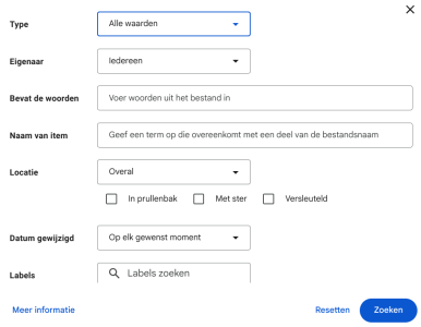 Zoeken in Google Drive, je opslag- en samenwerkingsplek in de cloud, wordt heel makkelijk als je de opties gebruikt die je aan het einde van de zoekregel vindt: