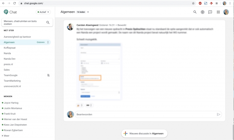 Snel een chat sturen naar een collega of partner? Google Chat is er zo bij gepakt. Ook Agenda is snel geopend zodat jullie verder kunnen met het inplannen van afspraken en taken. Geen oponthoud meer van een langzaam ladende mailbox met bijbehorende programma’s, maar direct van start.