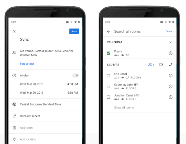 Deze feature bestaat dus al voor web. Wanneer je een vergadering inplant geeft Google Agenda een suggestie voor de vergaderruimte, gebaseerd op de locatie en voorkeuren van jou en de uitgenodigde gasten. En deze fijne feature is nu ook beschikbaar voor Android en iOS apparaten!