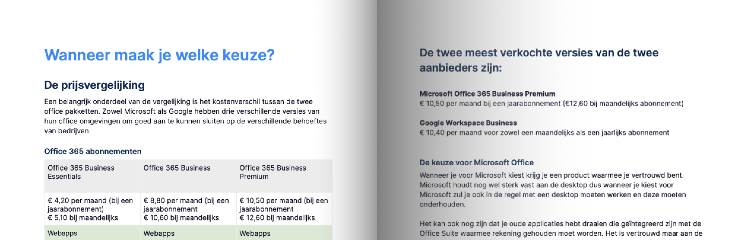 Onze whitepaper biedt een duidelijke en beknopte uitleg over deze verschillen. Zoals uitleg over functies, tools en prijsmodellen. Dit kan je helpen bij het bepalen welke software suite het beste bij jouw bedrijf past en waarom.