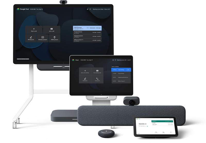 Dit ligt eraan hoe groot de kamer is waarvoor je een Google Meet Kit wilt aanschaffen. Op onze webshop kun je alle soorten en maten Meet-Kits terugvinden
