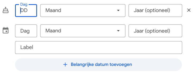 4. Klik op ‘Geboortedatum toevoegen’ om de verjaardag van jouw contactpersoon vast te leggen